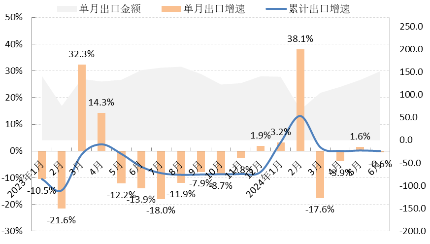图3 2024年1-6月我国服装及衣着附件出口情况