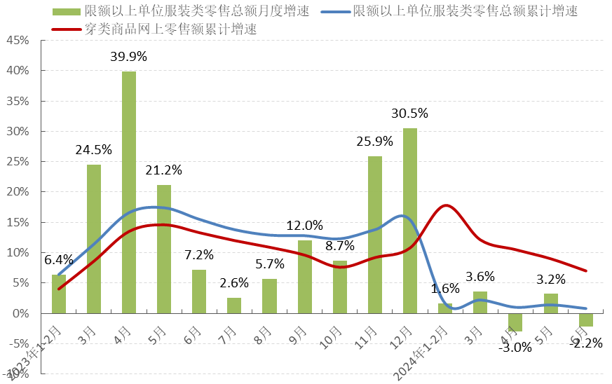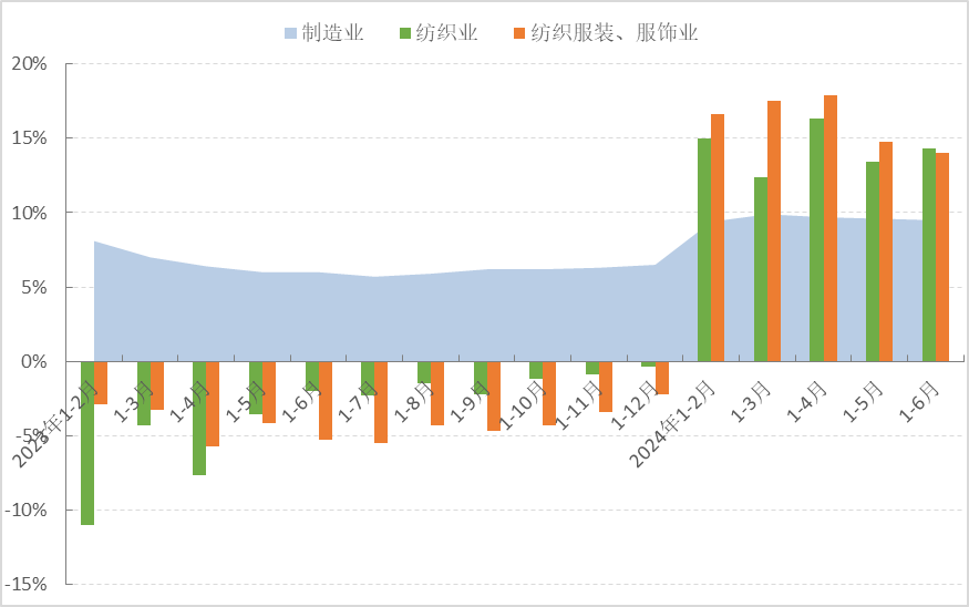 图1 2024年1-6月服装行业生产增速情况